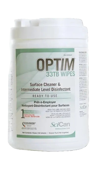 Optim® 33TB ready to use wipes provide broad-spectrum sanitization. They are tuberculocidal, virucidal, bactericidal at 1 minute and fungicidal at 3 minutes.