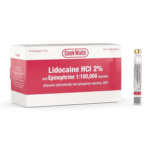 Lidocaine HCl 2% and Epinephrine Injection Cartridges, 50/Pkg